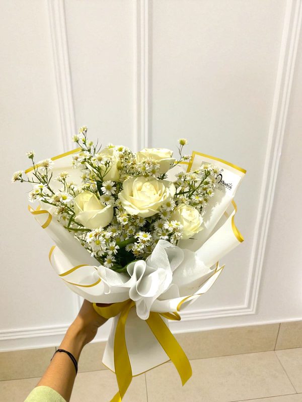 • Bisa pilih warna bunga dan warna wrapping (pembungkus) disesuaikan yang tersedia di studio