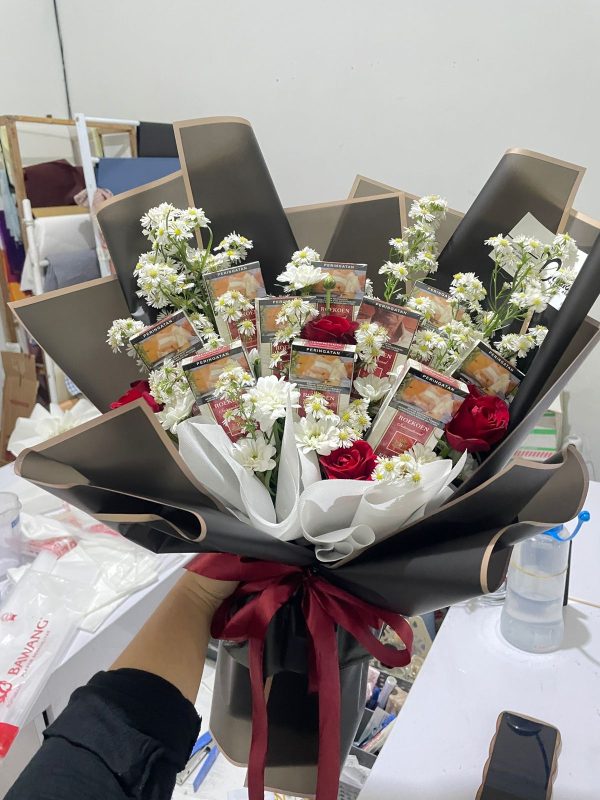 • Disclaimer : Kemiripan hasil jadi produk dengan foto mencapai 80% karena beberapa faktor seperti (1) ketersediaan model dan warna wrapping, (2) ketersediaan jenis dan warna bunga dan (3) teknik merangkai setiap florist berbeda