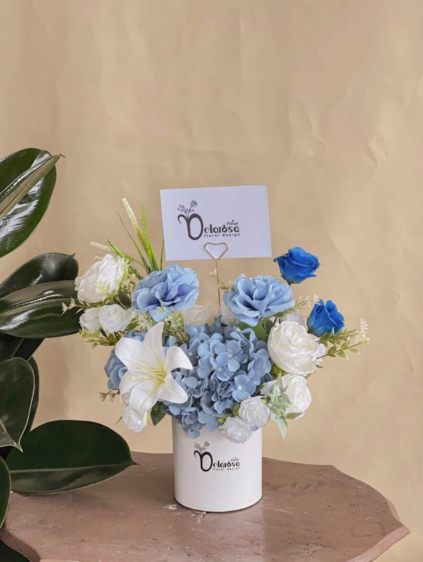 Tema warna bunga artificial tema putih, biru muda, biru navy