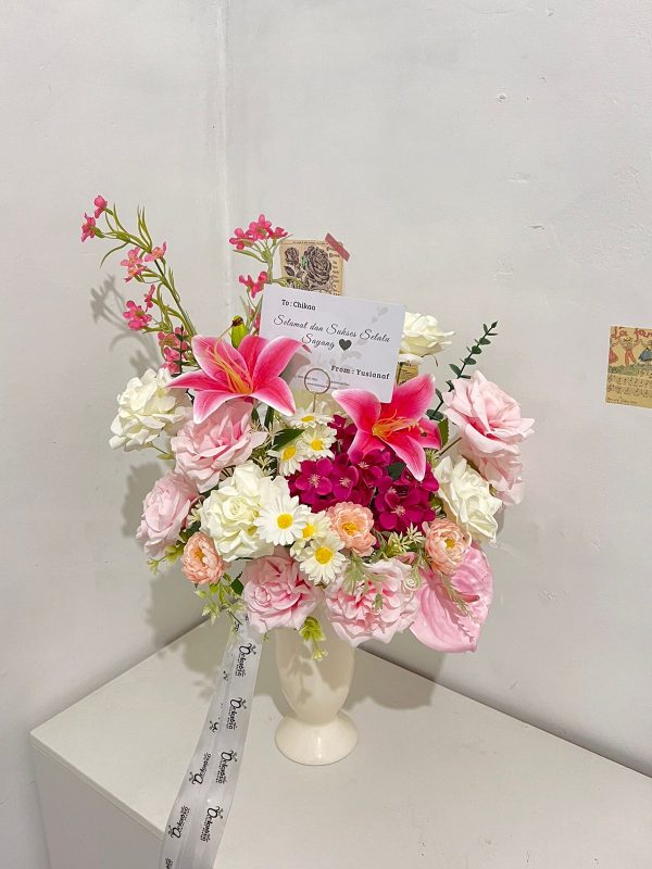 Disclaimer : Kemiripan hasil jadi produk dengan foto mencapai 75% karena beberapa faktor seperti (1) ketersediaan model dan warna wrapping dan pita, (2) ketersediaan jenis dan warna bunga, (3) Kondisi bunga yang tidak selalu sama, (4) teknik merangkai setiap florist berbeda, (5) komposisi dan komponen bunga di dalamnya, (6) Stock yang sudah tidak tersedia lagi, dll