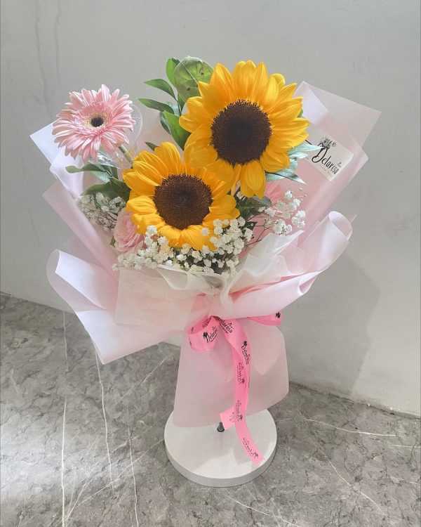 Disclaimer : Kemiripan hasil jadi produk dengan foto mencapai 75% karena beberapa faktor seperti (1) ketersediaan model dan warna wrapping dan pita, (2) ketersediaan jenis dan warna bunga, (3) Kondisi bunga yang tidak selalu sama, (4) teknik merangkai setiap florist berbeda, (5) komposisi dan komponen bunga di dalamnya, (6) Stock yang sudah tidak tersedia lagi, dll